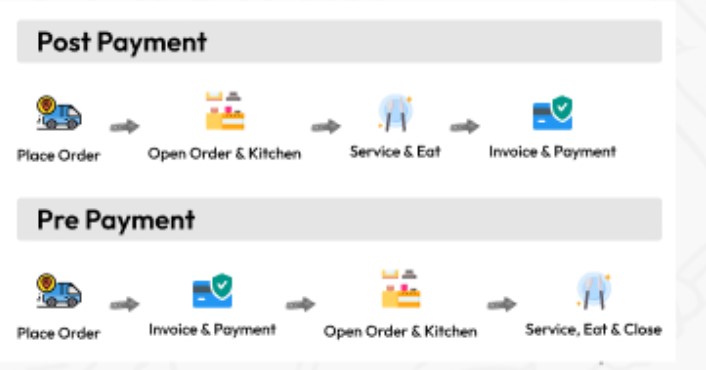 Here there are two types of ordering processes. One is Prepayment where customers have to pay in advance when ordering the food. In the Post Payment option, customers can pay bills after eating or taking the food. You can set any of those based on your restaurant type.