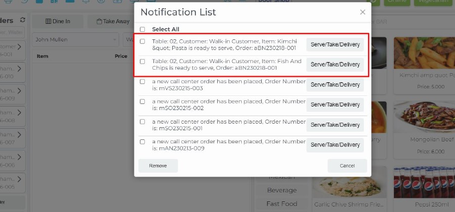 Take table order, Add new items to existing order, delete items. Sent order to kitchen monitor or print order to kitchen. Item prepared alert to waiter order delivered message makes the waiter and kitchen service much more easier.