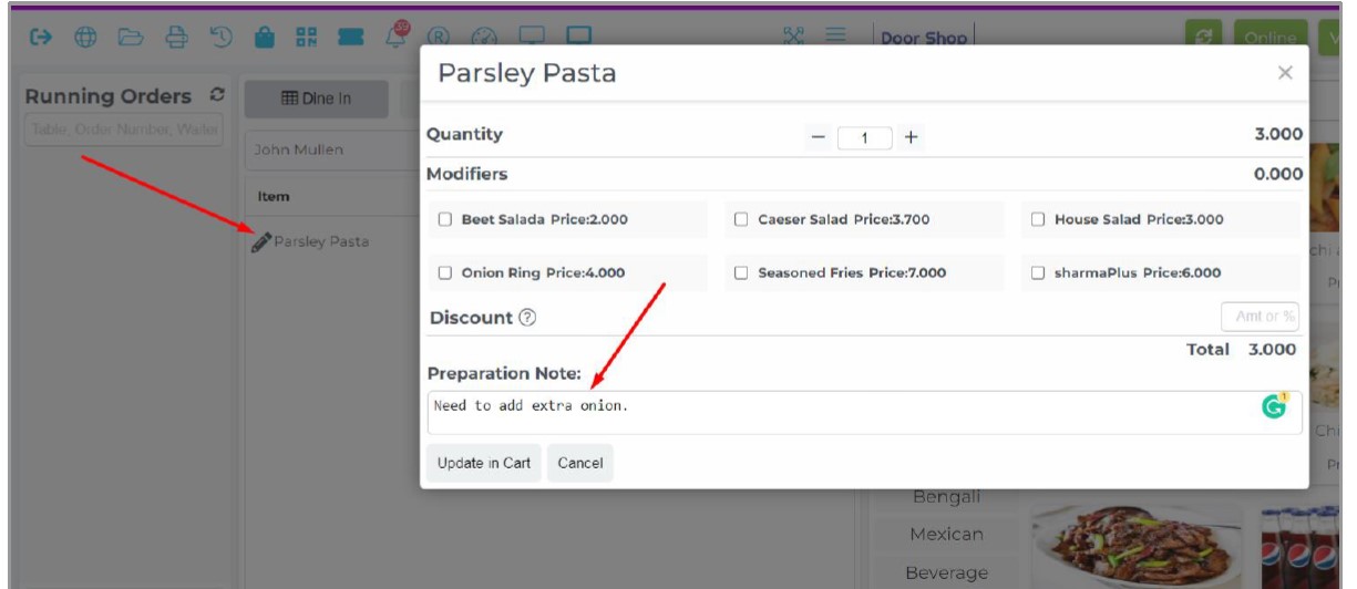 Using this feature you can add additional instructions from customers for the Chef to make the food.