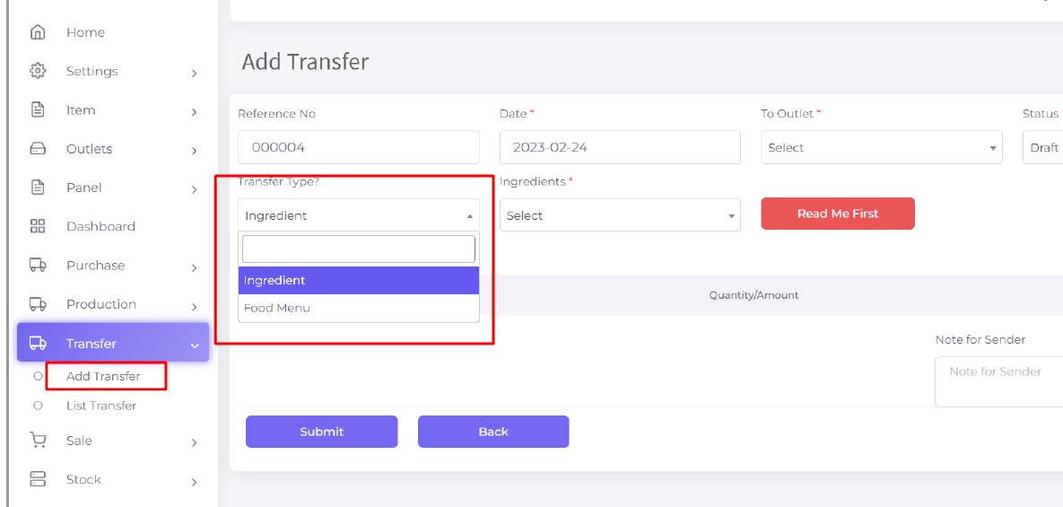 You will be able to transfer ingredients or food from your one branch/outlet to another branch/outlet in case you have no kitchen in your restaurant.